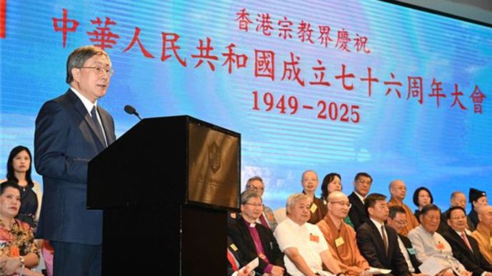 香港宗教界庆祝中华人民共和国成立76周年大会于11日举行。政务司副司长卓永兴、中央政府驻港联络办副主任尹宗华等出席。