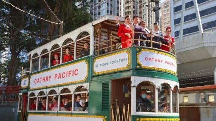 1月25日,香港国泰航空在屈地街电车厂举行80周年主题电车巡游活动。国泰航空还推出4款经典机身涂装电车,分别致敬其历史上的标志性设计。
