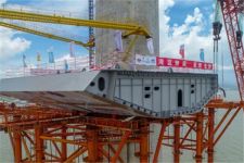 经过近4小时的持续定位和挂钩,19日18时,黄茅海跨海通道项目高栏港大桥首榀钢箱梁架设成功,标志项目转入上部结构施工阶段。