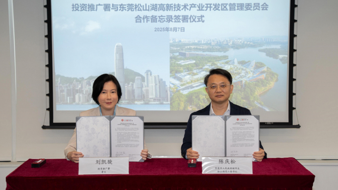 香港投资推广署与东莞松山湖高新技术产业开发区(松山湖高新区)八月七日签署合作备忘录并举行会议,加强双方合作并建立常态化合作机制,携手…