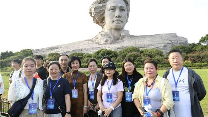 8月26日,2025全球华文媒体高层湖南行第二站来到长沙橘子洲景区,120位媒体代表近距离了解湖南风土人情,畅游橘子洲头,打卡青年毛泽东艺术雕…