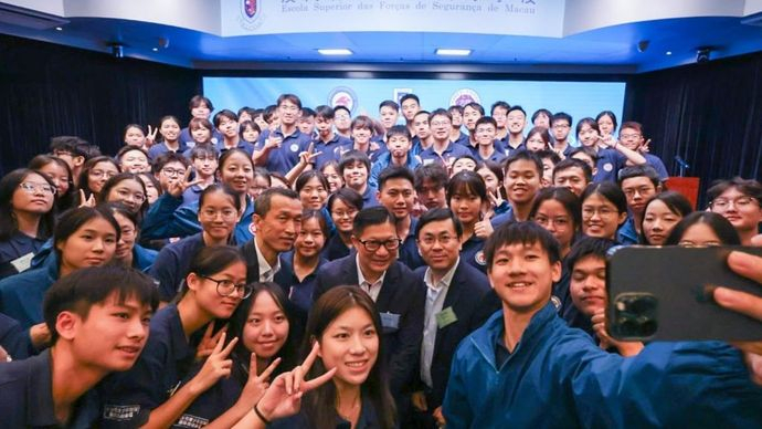 香港特区政府保安局局长邓炳强12日抵达澳门,出席新一届保安局青少年制服团队领袖论坛先导课程的启动礼,与香港青年成员、领袖论坛合作伙伴深…
