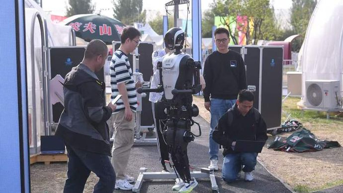 全球首个人形机器人半程马拉松本周六上午将在北京亦庄鸣枪起跑。4月17日下午,新京报记者来到机器人“跑者”驻地,无论是大个子机器人,还是…