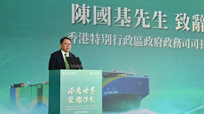 香港新闻社9月28日电 招商轮船全球首艘甲醇双燃料动力滚装船“CM HONG KONG港荣轮”今日(28日)举办首航香港仪式。