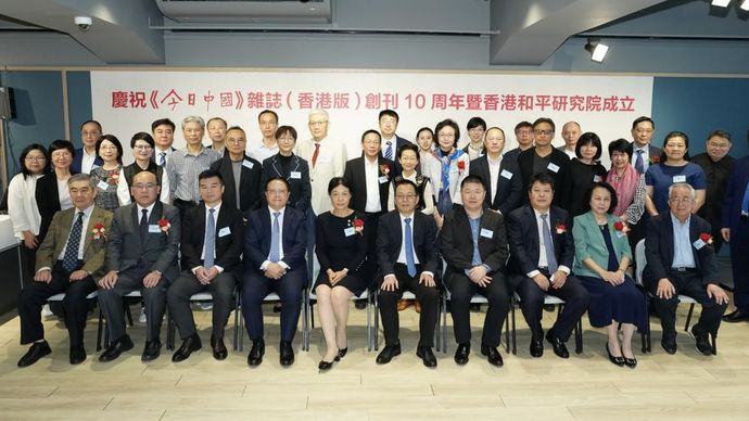 由和平图书有限公司主办的“庆祝《今日中国》杂志(香港版)创刊十周年暨香港和平研究院成立仪式”昨日隆重举行,60多位各界嘉宾出席见证。